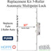 This comprehensive replacement kit is designed to replace the Fuhr 3 Roller Automatic Version Multipoint Lock. The kit includes everything needed for installation: a bottom multipoint lock gear, top extension, stainless steel screws, underplate, and auto release roller strike.