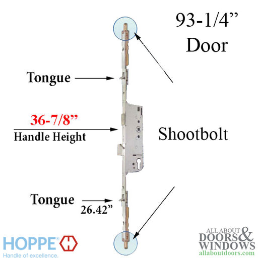 View full detailsHoppe HLS9000 5-Point Lock – 45/92, 93-1/4" Door (4990286-KIT)This Hoppe HLS9000 5-point multipoint lock is designed specifically for 93-1/4 inch t...