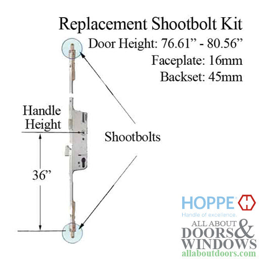 View full detailsMultipoint Lock Replacement Kit – 45/92, 36" HH (49902-1645SB-06-KIT)This comprehensive multipoint lock replacement kit is designed to replace a va...