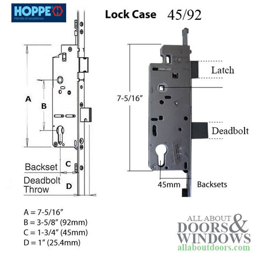 View full detailsHoppe 2-Piece Shootbolt Lock – 45/92, Discontinued (499023499)This Hoppe 2-piece shootbolt multipoint lock is a discontinued old-style system that ...