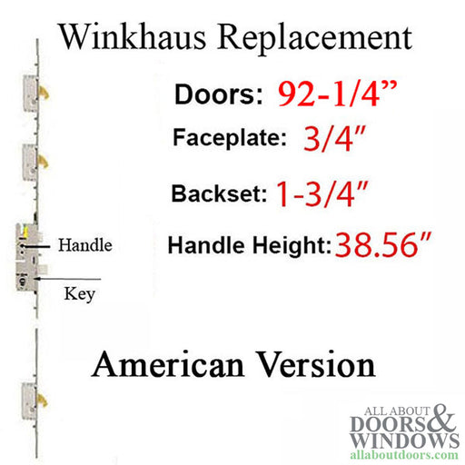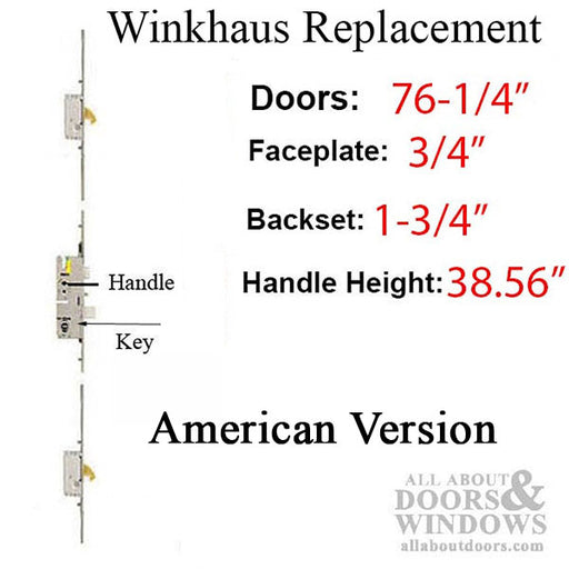 View full detailsWinkhaus Multipoint Lock – 45/92, 76-1/4" Door (49906-2045H-201)This custom replacement multipoint lock is designed specifically for 76-1/4 inch ta...