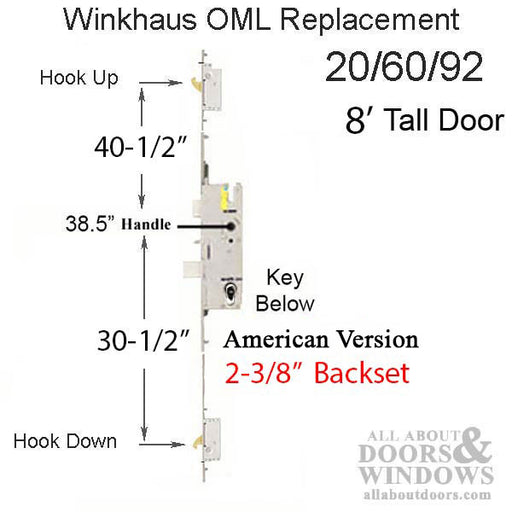 View full detailsWinkhaus Multipoint Lock – 45/92, 92-1/2" Door (49906-2045H-202)This custom Winkhaus multipoint lock is designed specifically for 92-1/2 inch tall ...
