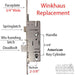 The original Winkhaus OML featured the key above the lever. This replacement kit positions the key below the lever, which changes the handle height from the original 36 inches to approximately 38-9/16 inches (979mm) depending on installation. This is an important consideration when planning your replacement.
