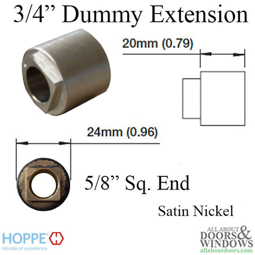View full detailsHoppe Dummy Handle Extension – 3/4" (2172877)This Hoppe Dummy Handle Extension adds 0.79 inches (20mm) to the length of your fixed lever handle. De...
