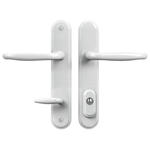 All Truth Sentry handle sets in this collection feature 92mm PZ spacing, which refers to the distance from the center of the handle spindle to the center of the thumb turn or cylinder. This measurement is the industry standard for North American multipoint locks and is essential for ensuring your new handle set aligns correctly with your existing lock mechanism. Before ordering, measure your current handle set's PZ spacing to confirm compatibility. The escutcheon plates on these sets measure 10 inches in length with 8-1/2 inch screw hole spacing, which should match your door's existing mounting holes.