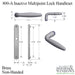 The handle set is designed to work with American cylinders and is compatible with Amesbury multipoint locks as well as most other multipoint lock brands. The non-handed design means this trim works for both left-hand and right-hand door applications without modification.