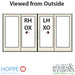 Handing is determined by viewing the door from the exterior. Left Hand (LH) or XO configuration means the fixed panel is on the left side when looking at the door from outside.