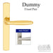 A dummy handleset has fixed handles that do not operate any locking mechanism. There is no key, thumbturn, or latch function – the handles are purely decorative or used on inactive doors.