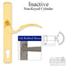 Inactive means this handle set is non-keyed and does not include a cylinder or keyed lock. It features an inside thumb turn for operation and is typically used on doors where keyed entry is not required.
