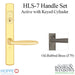 The non-handed design allows for installation on both left-hand and right-hand doors without modification. The handleset accommodates doors with a thickness of 45mm (1-3/4 inches) and features a screw hole spacing of 9-1/8 inches (231.8mm).