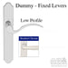 • Available Functions: Active (primary functioning door with cylinder holes on both sides, includes key lock cylinder with inside thumb-turn), Inactive (inactive panel with interior cylinder hole only, includes half cylinder with thumb-turn), Dummy (fixed position levers, no cylinder holes)
