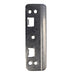 This strike plate is constructed from stainless steel for durability and corrosion resistance.