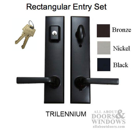 Trilennium handlesets deliver uncompromised security with innovative multi-point locking systems featuring three full deadbolts and a patented I-Beam construction. Available in multiple styles including Pinnacle, Eclipse, Curved, Rectangular, and Horizon designs, these premium door hardware options strengthen door panels while preventing warping. Experience the perfect blend of sophisticated aesthetics and fortress-like protection with Trilennium's industry-leading handleset collection.